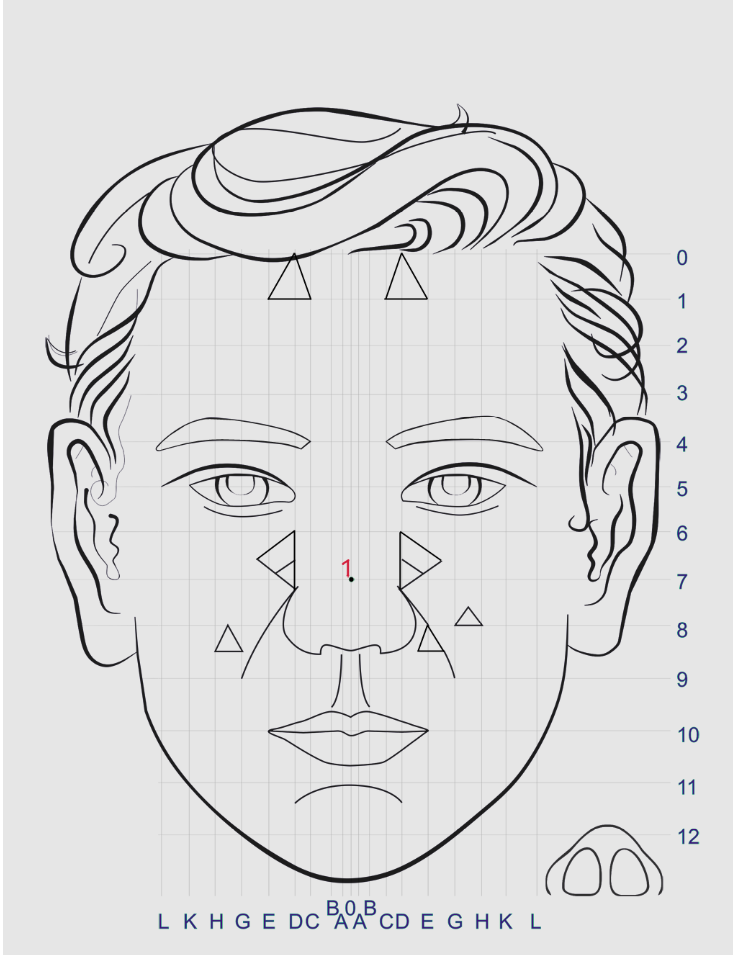- Trên đường dọc giữa mũi.